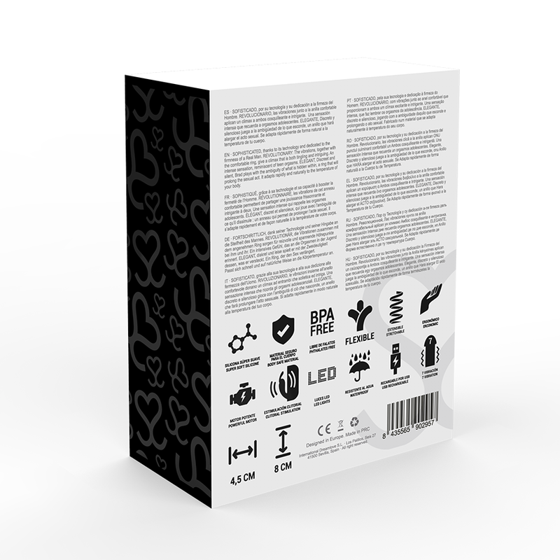 - Diametro dell’anello: 3 cm, flessibile, adattabile a tutte le dimensioni del pene